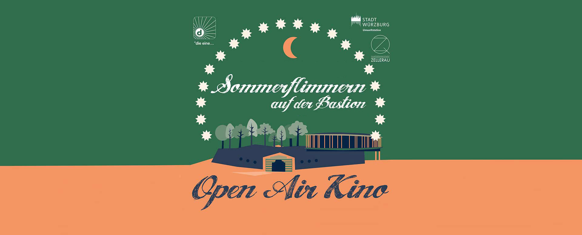 Das Sommerflimmern findet auf der wunderschönen Bastion überhalb der Umweltstation der Stadt Würzburg am Nautiland statt. Eingang direkt links an der Umweltstation am Niggelweg. Ihr könnt dorthin zu Fuß laufen (ab der alten Mainbrücke sind es nur ca. 5 Min). Bitte nehmt warme Decken mit auf die Ihr Euch setzen könnt oder bucht einen unserer 200 Liegestühle.